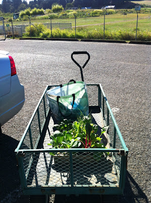 This morning I took my flat of vegetables and loaded them into the garden wagon. I felt a little odd bringing a flat of plants to the garden in mid September. This is the first time I've tried planting anything other than mums in the fall. Goal is to plant by September and harvest before the first frost, which here ranges from Nov. 1-7.